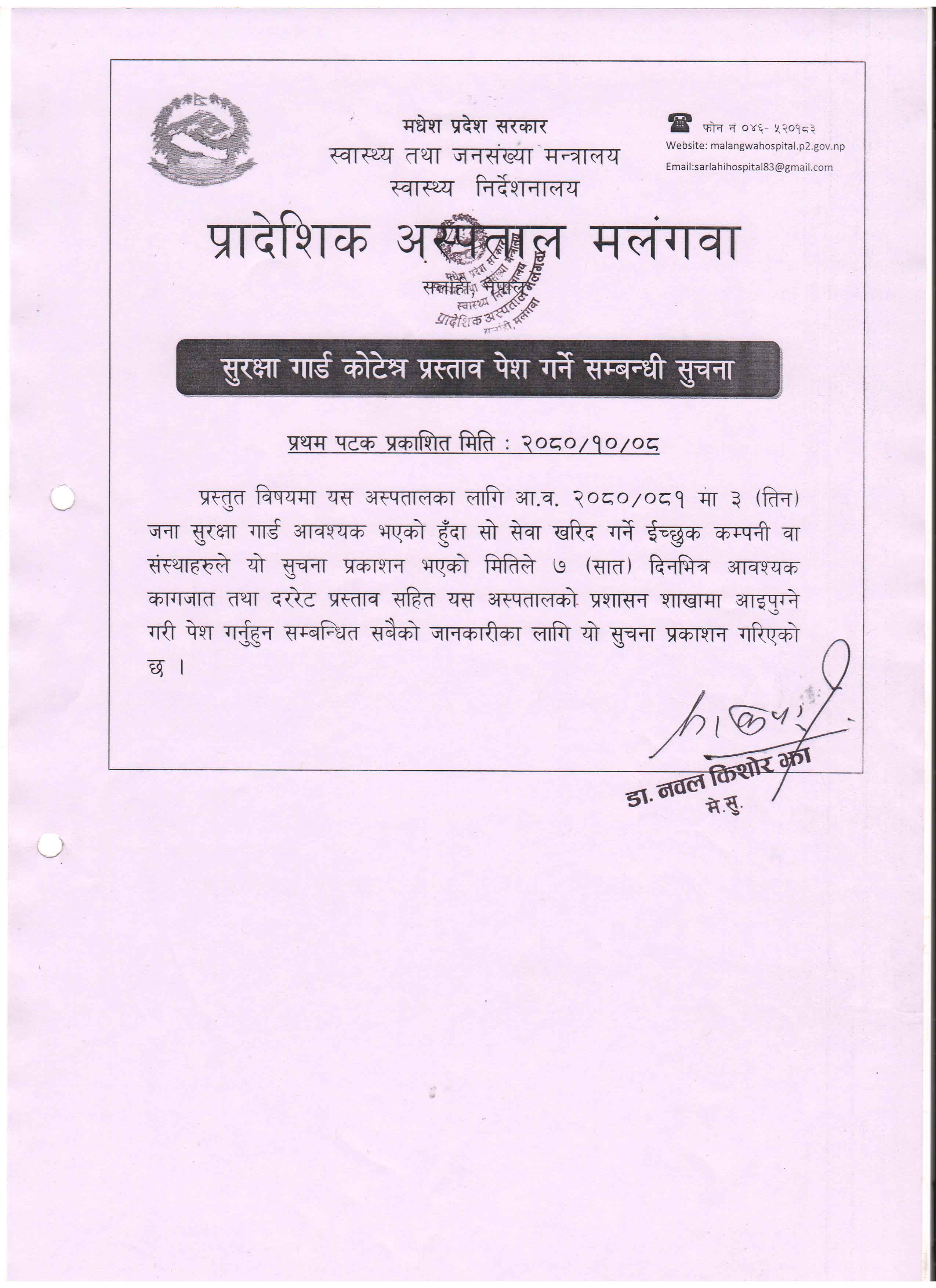सुरक्षा गार्ड भर्ना सम्बन्धी सुचना